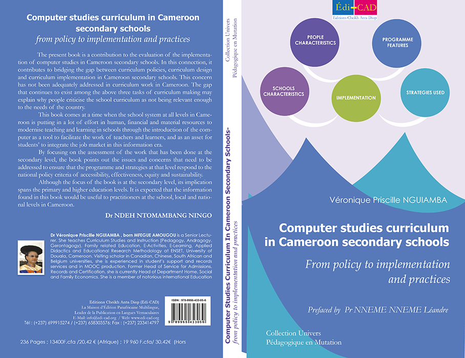 Dr Véronique Priscille NGUIAMBA , born MFEGUE AMOUGOU is a Senior Lecturer. She teaches Curriculum Studies and Instruction (Pedagogy, Andragogy, Gerontagogy), Family related Education, E-Activities, E-Learning, Applied Didactics and Educational Research Methodology at ENSET, University of Douala, Cameroon. Visiting scholar in Canadian, Chinese, South African and Belgium universities, she is experienced in student’s support and records services and in MOOC production. Former Head of Service for Admissions, Records and Certification, she is currently Head of Department Home, Social and Family Economics. She is a member of notorious international Education Associations and Working Groups.