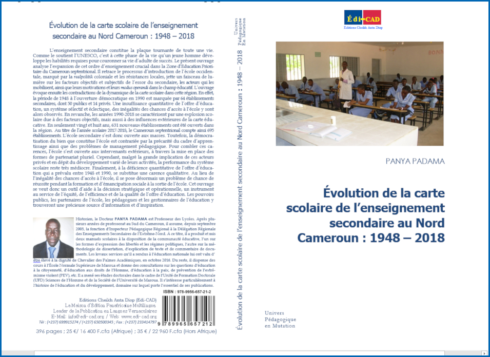 Historien, le Docteur PANYA PADAMA est Professeur des Lycées. Après plusieurs années de professorat au Sud du Cameroun, il assume, depuis septembre 2005, la fonction d’Inspecteur Pédagogique Régional à la Délégation Régionale des Enseignements Secondaires de l’Extrême-Nord. À ce titre, il a produit et mis deux manuels scolaires à la disposition de la communauté éducative, l’un sur les formes d’expression des libertés et les régimes politiques, l’autre sur la méthodologie de dissertation, d’explication de texte et de commentaire de documents. Les loyaux services qu’il a rendus à l’éducation nationale lui ont valu d’être élevé à la dignité de Chevalier des Palmes Académiques, en octobre 2016. Du reste, il dispense des cours à l’École Normale Supérieure de Maroua et donne des consultations sur les questions d’éducation à la citoyenneté, d’éducation aux droits de l’Homme, d’éducation à la paix, de prévention de l’extrémisme violent (PEV), etc. Il a mené ses études doctorales dans le cadre de l’Unité de Formation Doctorale (UFD) Sciences de l’Homme et de la Société de l’Université de Maroua. Il s’intéresse particulièrement à l’histoire de l’éducation et du développement, domaine sur lequel porte l’essentiel de ses publications.