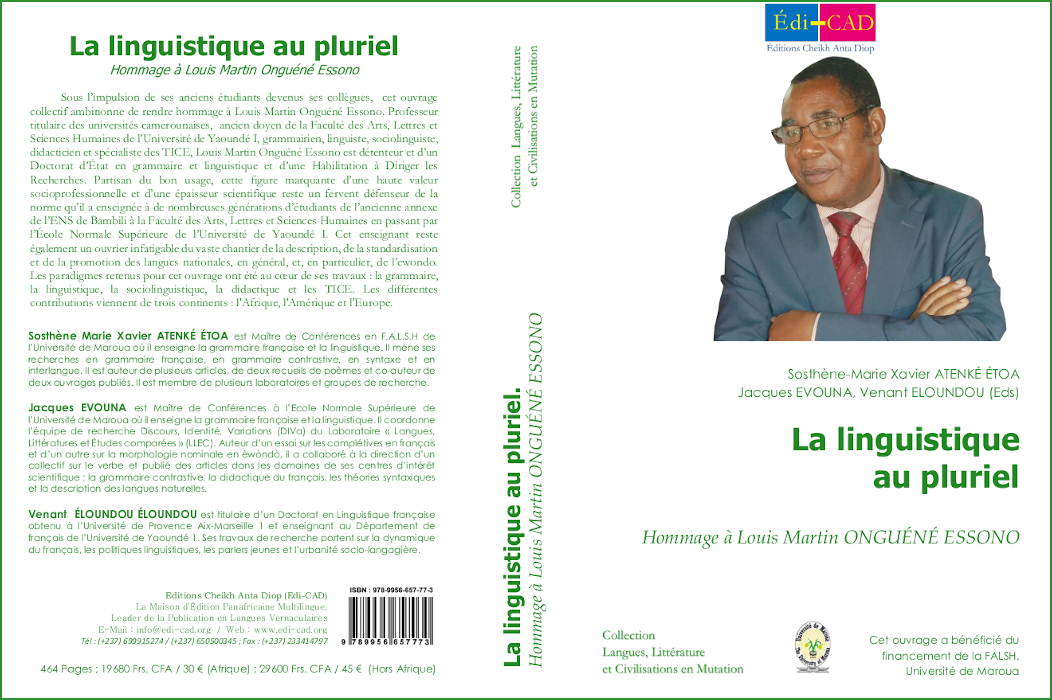 Sosthène Marie Xavier ATENKÉ ÉTOA est Maître de Conférences en F.A.L.S.H de l’Université de Maroua où il enseigne la grammaire française et la linguistique. Il mène ses recherches en grammaire française, en grammaire contrastive, en syntaxe et en interlangue. Il est auteur de plusieurs articles, de deux recueils de poèmes et co-auteur de deux ouvrages publiés. Il est membre de plusieurs laboratoires et groupes de recherche.