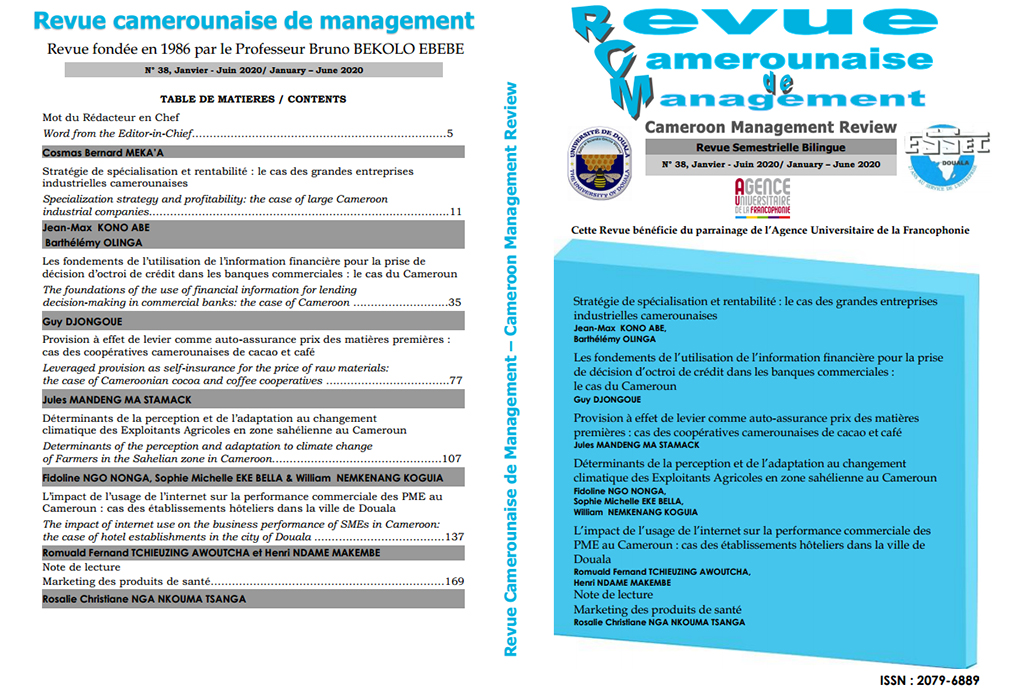 Revue camerounaise de management N° 38, Janvier - Juin 2020 / January – June 2020